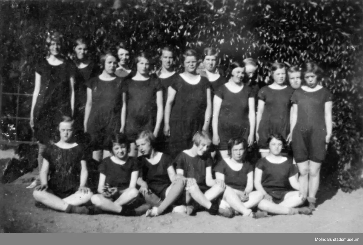 Elever i gymnastikkläder på Stretereds skolhem, cirka 1930.