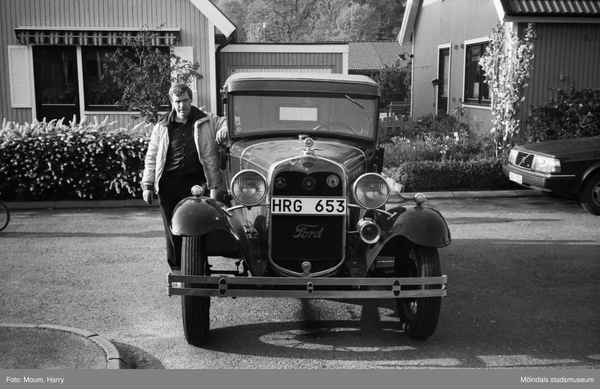 "En A-ford från 1930 är en av Leif Alenäs ögonstenar." Kållered, år 1983.
