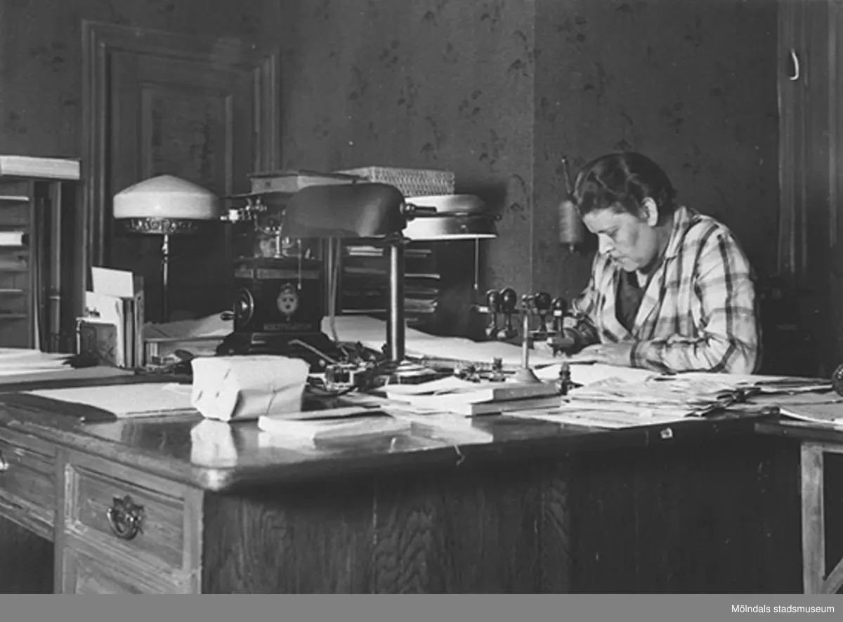 Elin Carbe på kontoret Westanå på Frölundagatan 6/Mölndalsbro 52, år 1931