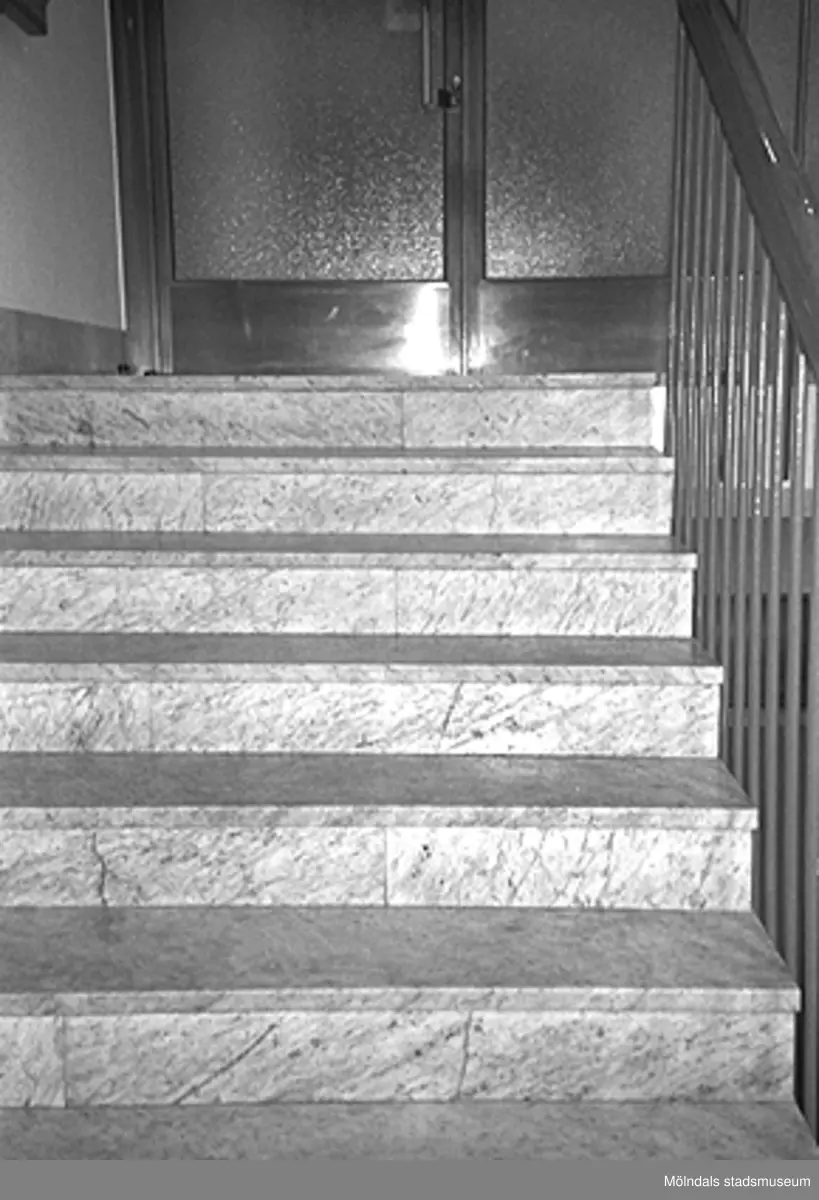 Mölndals stadshus, juni 1994. Byggnadsdetalj: Del av trappa.