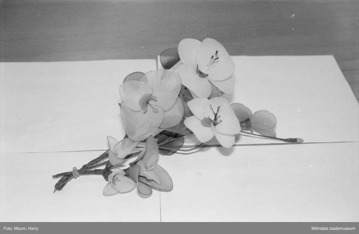 Utställning med pärlbroderier på Kållereds bibliotek, år 1985.