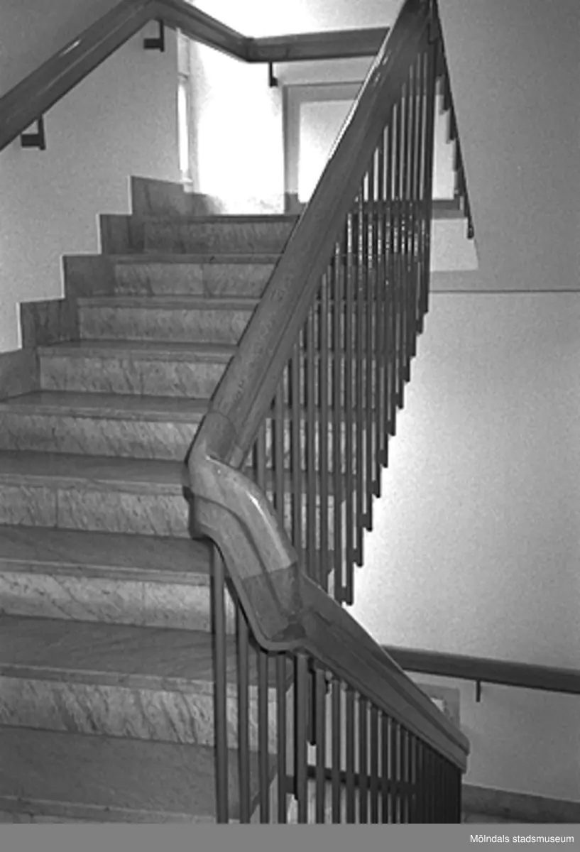 Interiör i Mölndals stadshus, juni 1994. Byggnadsdetalj: Trappa.