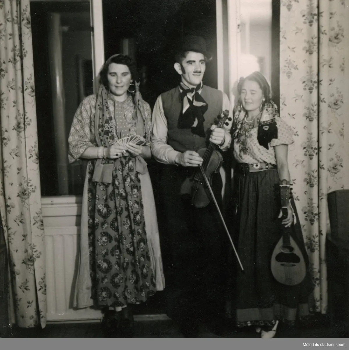 Personalfest på Streteredshemmet i Kållered, år 1955. Greta Hagman, Karin Haneberg, med zigenaren Ivar Andersson.