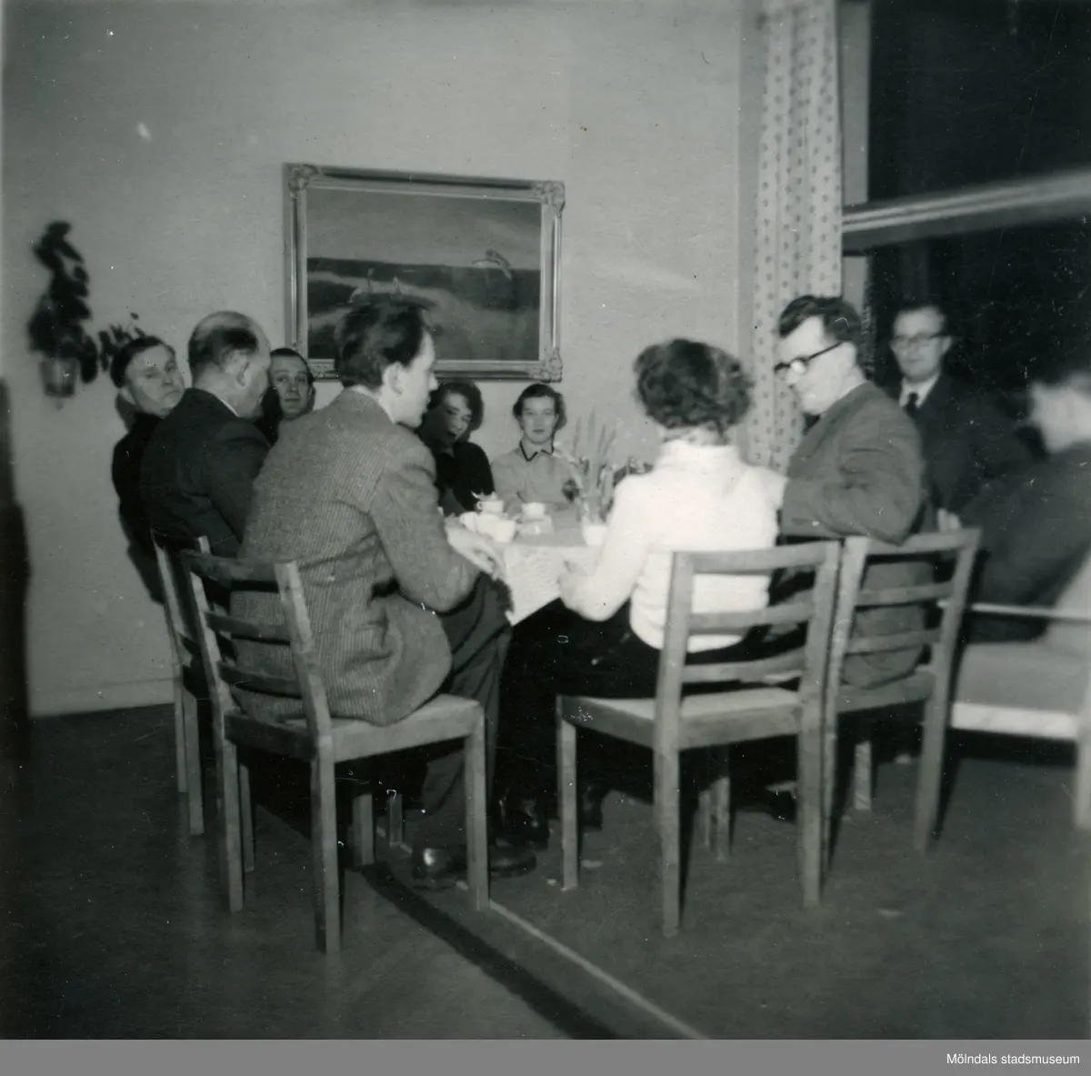 I personalmatsalen på skol- och vårdhemmet Stretered i Kållered. Rektor Arne Larsson med personal: Hjalmar Kristiansson, Vilgot Axelsson och Ivar Andersson.