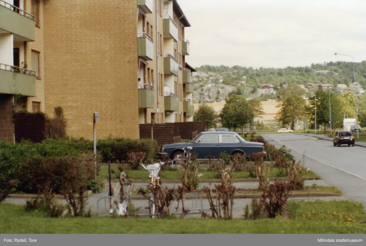 Bostadsbebyggelse vid Irisgatan i Åby, Mölndal, på 1970-talet. Vy mot öster.