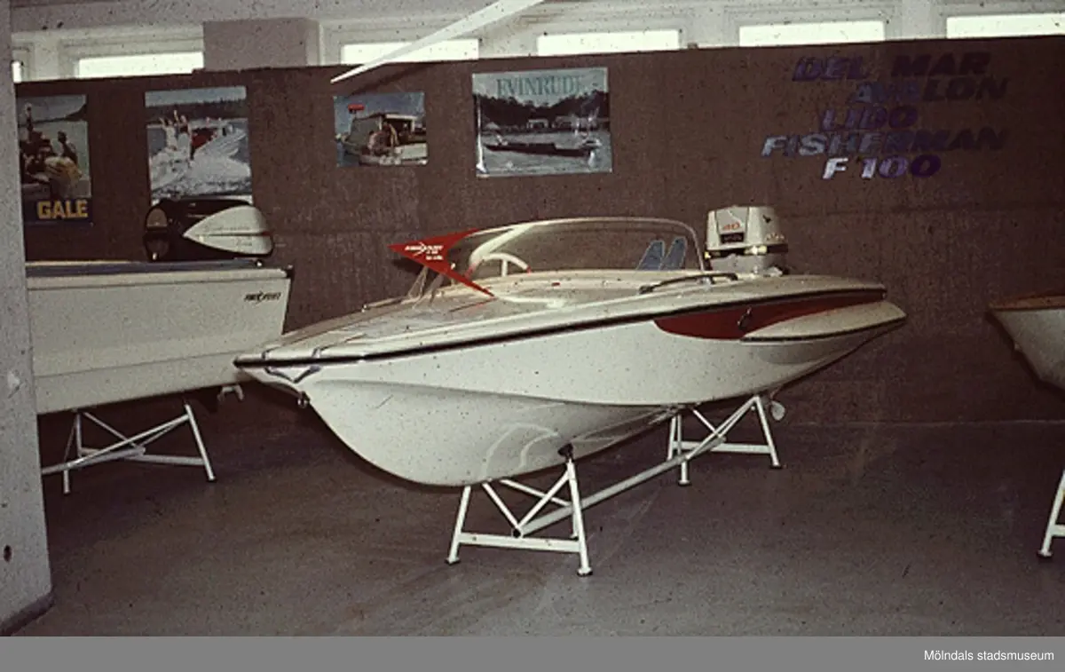 Utställning av färdig kabinbåt, Lamellplast i Almås våren/sommaren 1960. Bilderna är tagna ungefär där Almåsskolans slöjdsal nu är belägen i Lindome. Fabriken ägdes tidigare av Colldéns möbler. Fabrikslokalerna ägdes sedan av Hj. C. Samuelsons AB som tillverkade i huvudsak butiksinredningar till Åhlen & Holms varuhus.