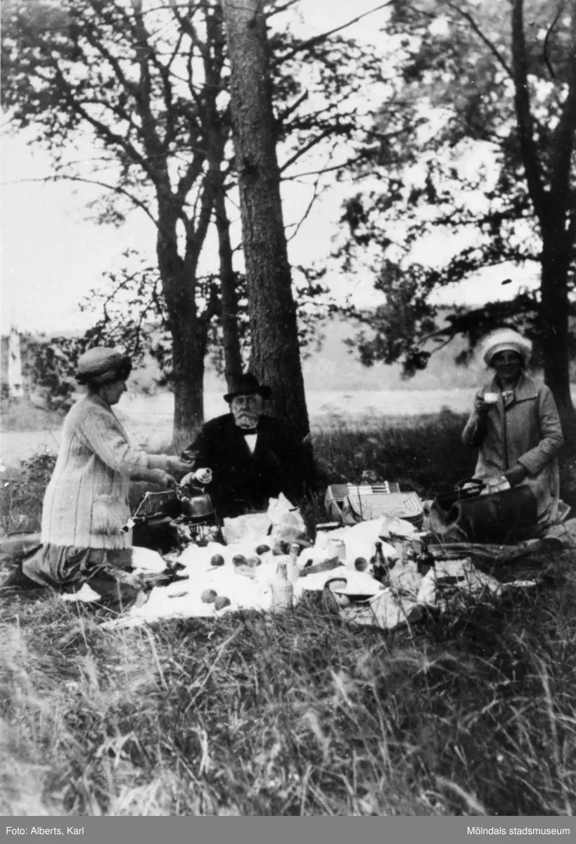 Picknick med Håkan och Anna Jönsson samt Ester Alberts vid Tulebosjön, 1920-tal.