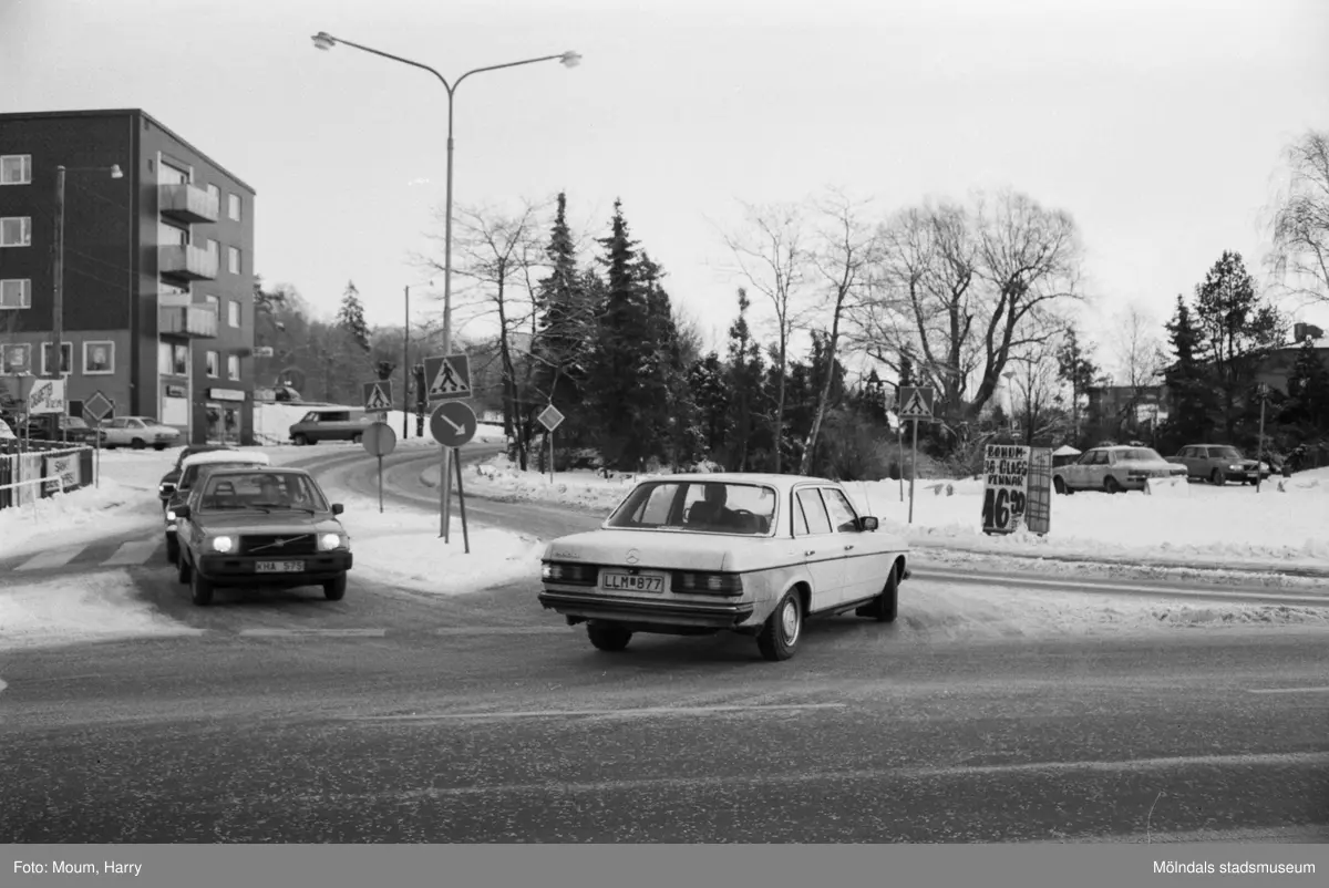 Trafik i korsningen Gamla Riksvägen-Streteredsvägen i Kållered, år 1984.