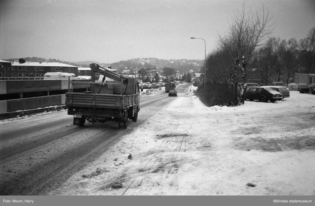 Trafik på Streteredsvägen i Kållered vintern 1984.