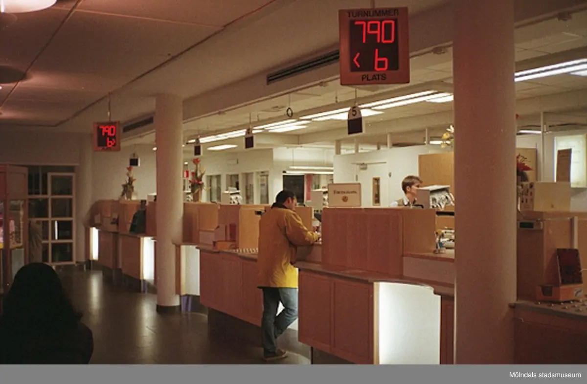 Skandinaviska Enskilda Bankens insida på Brogatan/Nygatan. Mölndalsbro i dag - ett skolpedagogiskt dokumentationsprojekt på Mölndals museum under oktober 1996. 1996_1212-1226 är gjorda av högstadieelever från Kvarnbyskolan 9D, grupp 5. Se även 1996_0913-0940.