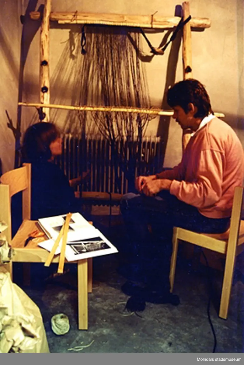 Uppsättning av upprättstående vävstol