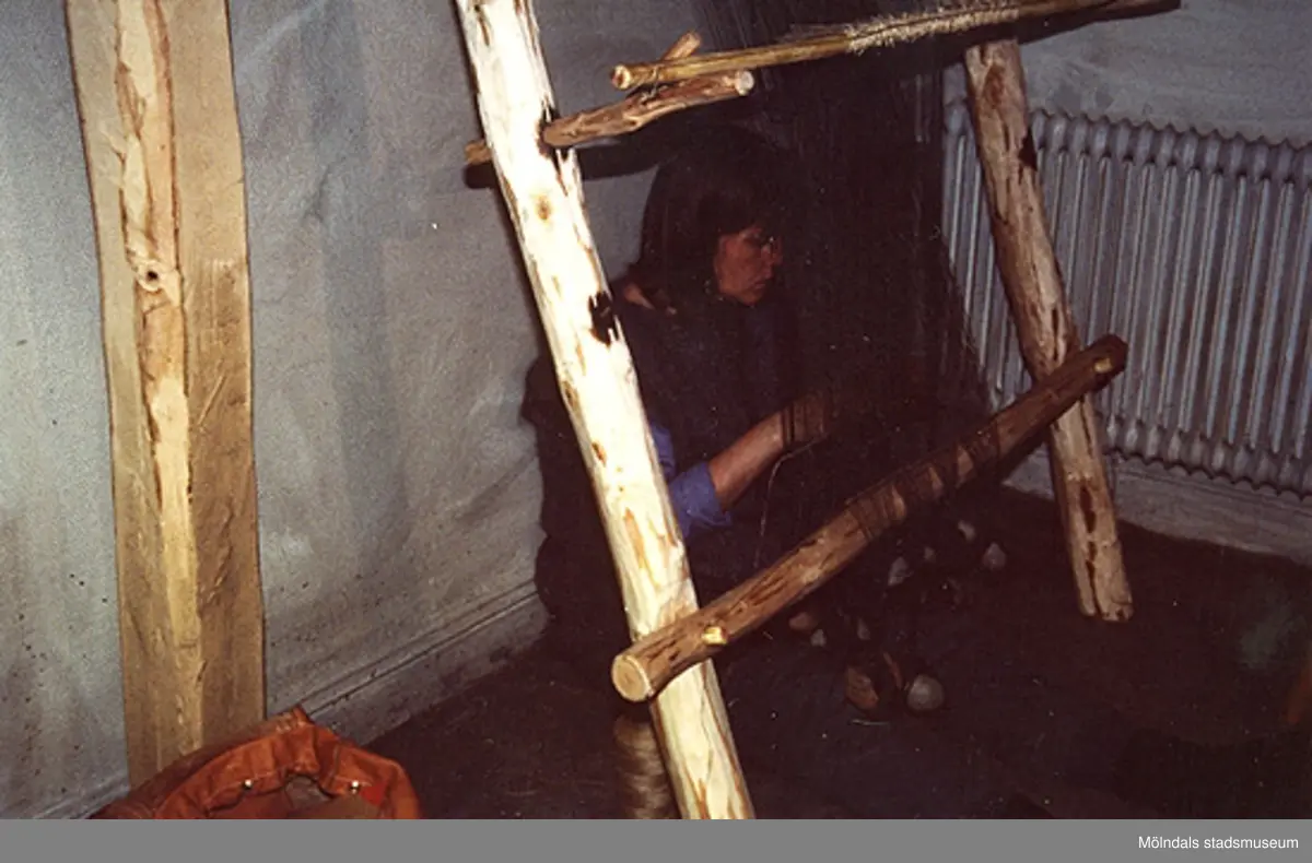 Uppsättning av upprättstående vävstol