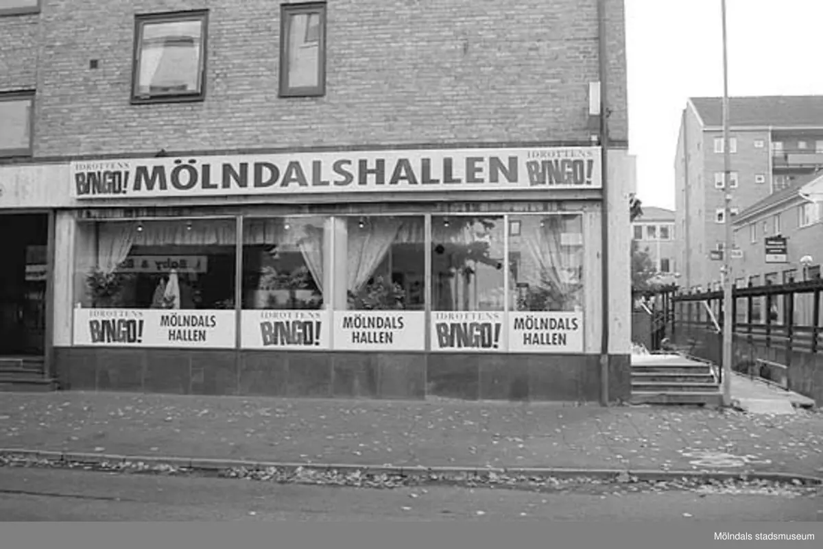 Mölndalshallen Bingo! Mölndalsbro i dag - ett skolpedagogiskt dokumentationsprojekt på Mölndals museum under oktober 1996. 1996_ 0931-0940 är gjorda av högstadieelever från Kvarnbyskolan 9A, grupp 2. Se även gruppbilder på klasserna 1996_1382-1405 och bilder från den färdiga utställningen 1996_1358-1381.