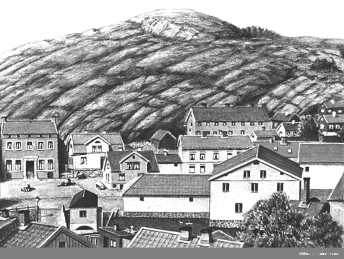 Gamla torget, vy sedd från Kvarnbyn i söder. Foto utav teckning av K. Berg, 1913.