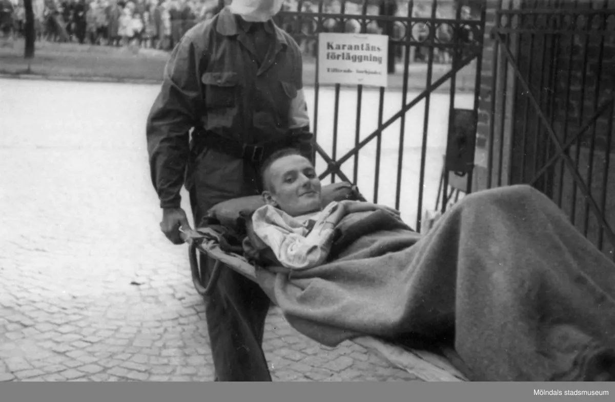 "Karantänsförläggning" på Kvarnbyskolan för flyktingar från koncentrationsläger i Tyskland, 1945.