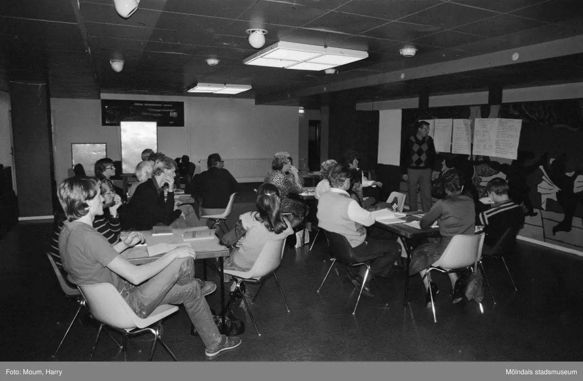 Bridgesällskapet SANG i Kållered har nybörjarkurs i bridge på fritidsgården i Kållered, år 1983.