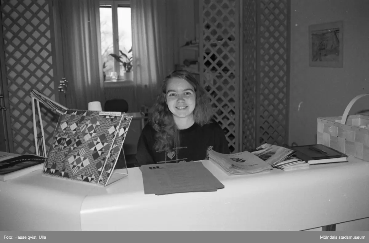 Kim Linder (receptionist) i arbete på Mölndals Museum 1992.