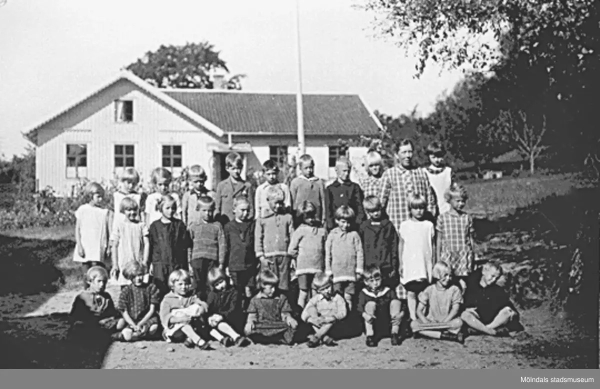 Gamla Liveredskolans 1:a och 2:a klass med lärarinnan Hulda Holmén år 1926 -1927. Samtliga elever är födda 1919 - 1920.