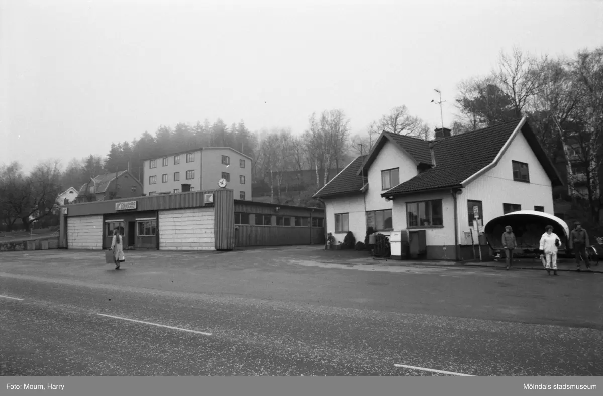 Tufte Marias hus som inrymmer Kålleredsbussarnas kontor vid Gamla Riksvägen i Kållered, år 1984. Till vänster Kålleredsbussarnas garage och verkstad.