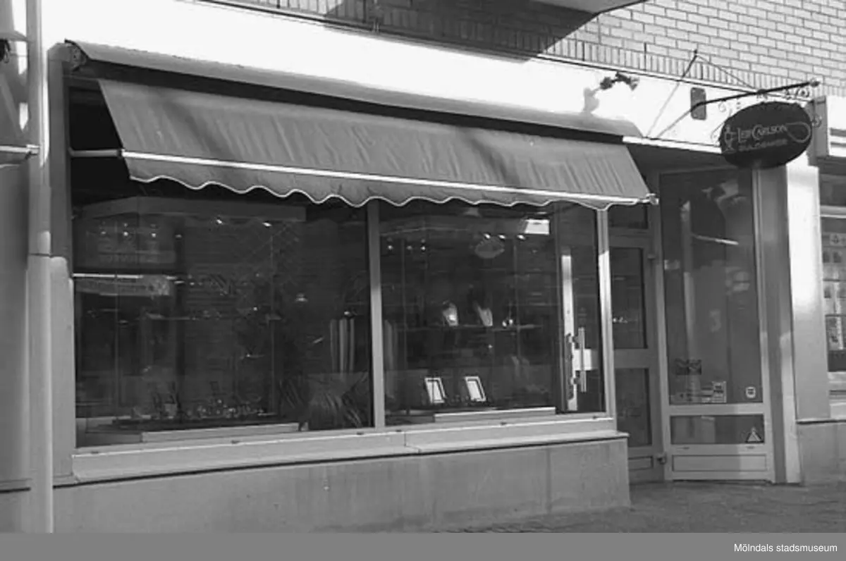 Leif Carlssons guldsmide på Medborgaregatan. Mölndalsbro i dag - ett skolpedagogiskt dokumentationsprojekt på Mölndals museum under oktober 1996. 1996_ 0931-0940 är gjorda av högstadieelever från Kvarnbyskolan 9A, grupp 2. Se även gruppbilder på klasserna 1996_1382-1405 och bilder från den färdiga utställningen 1996_1358-1381.
