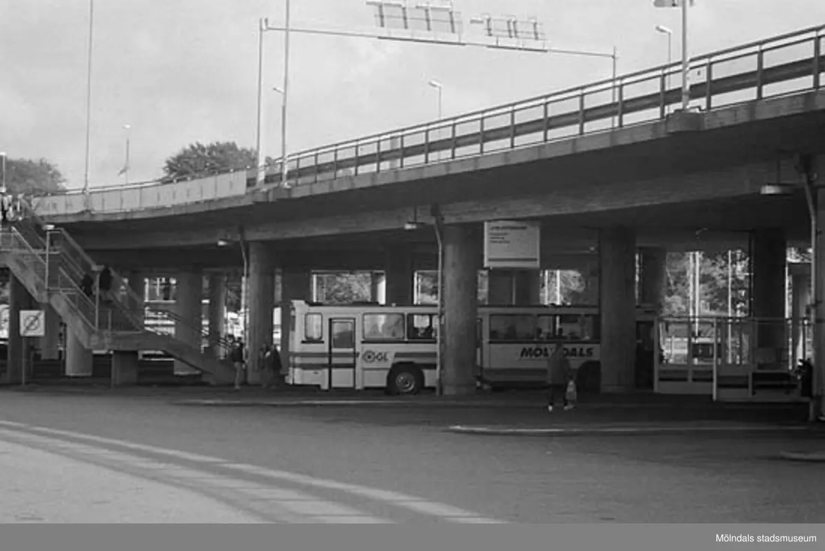 Ändhåpllplats under bron. Mölndalsbro i dag - ett skolpedagogiskt dokumentationsprojekt på Mölndals museum under oktober 1996. 1996_0950-0965 är gjorda av högstadieelever från Kvarnbyskolan 9A, grupp 3. Se även 1996_0913-0940, gruppbilder på klasserna 1996_1382-1405 samt bilder från den färdiga utställningen 1996_1358-1381.