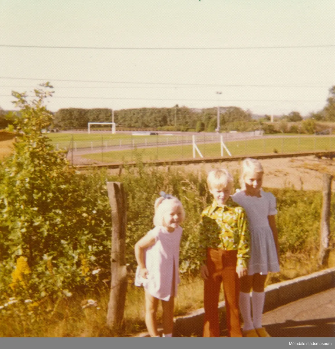 Christine, Malin (Ingelas vän) och Ingela (Christines syster) på Ingelas första skoldag, den 20 augusti 1974.