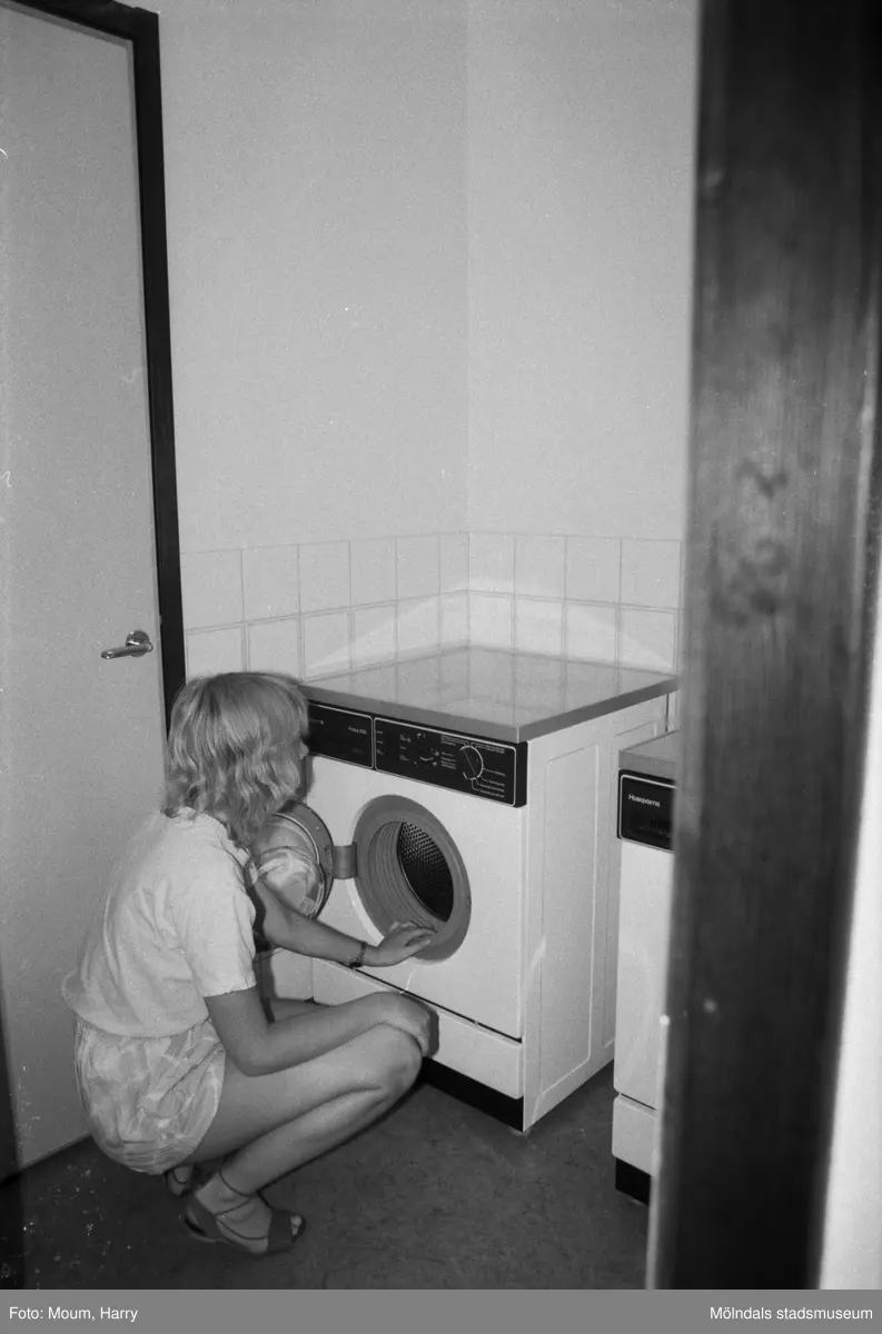 Kvinna som tvättar på Torrekulla turiststation i Kållered, år 1984.