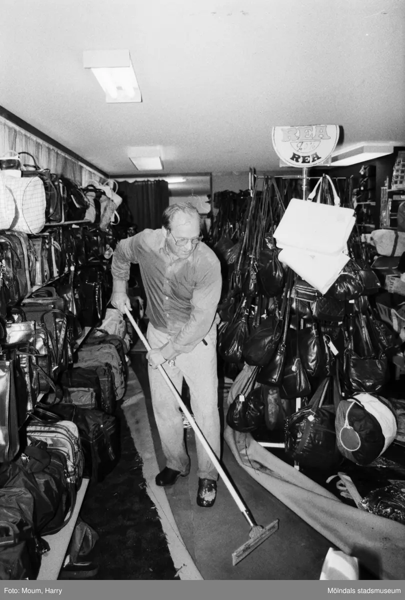 Familjeföretaget Väsktillverkning på Våmmedalsvägen i Kållered drabbas av översvämning, år 1983.