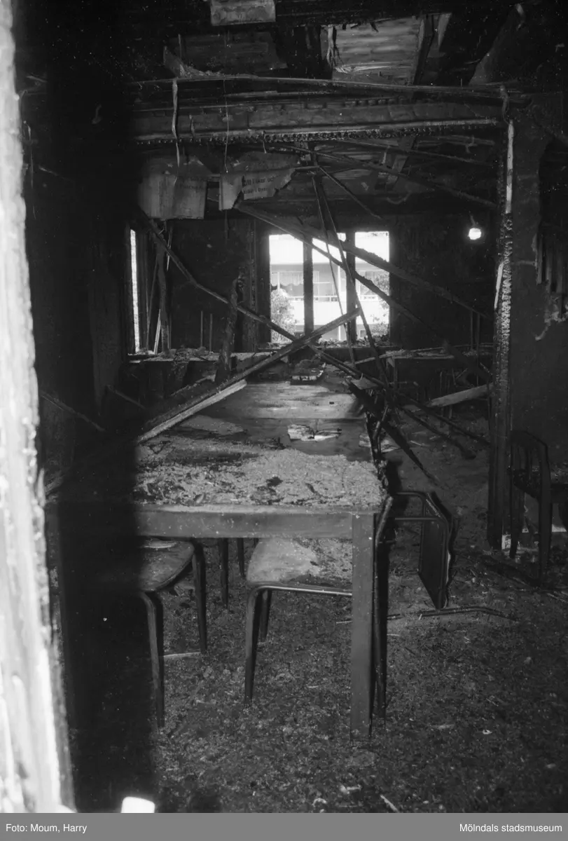 Eldsvåda på mölndalslänkarnas gård i Kållered, år 1984. "Där elden farit fram är inte mycket kvar."