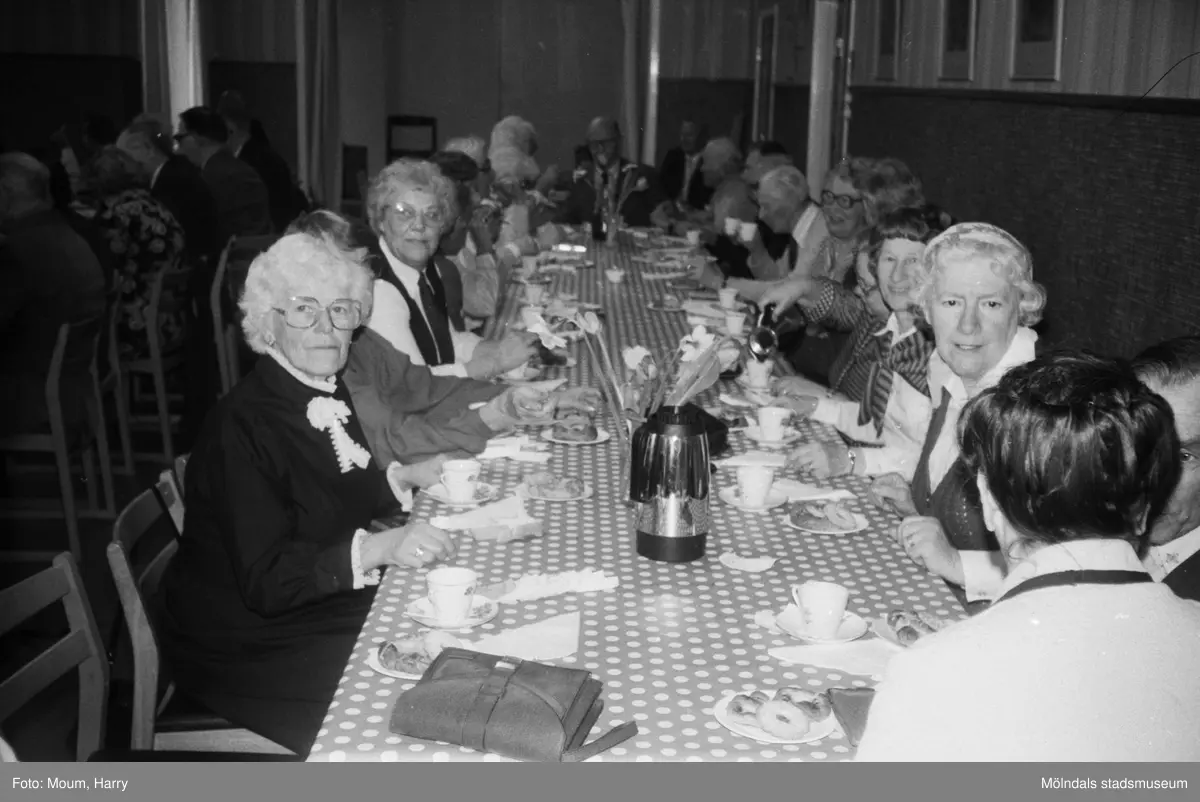 Titel: Pensionärsträff i gamla kommunalhuset i Kållered, år 1983. För mer information om bilden se under tilläggsinformation.