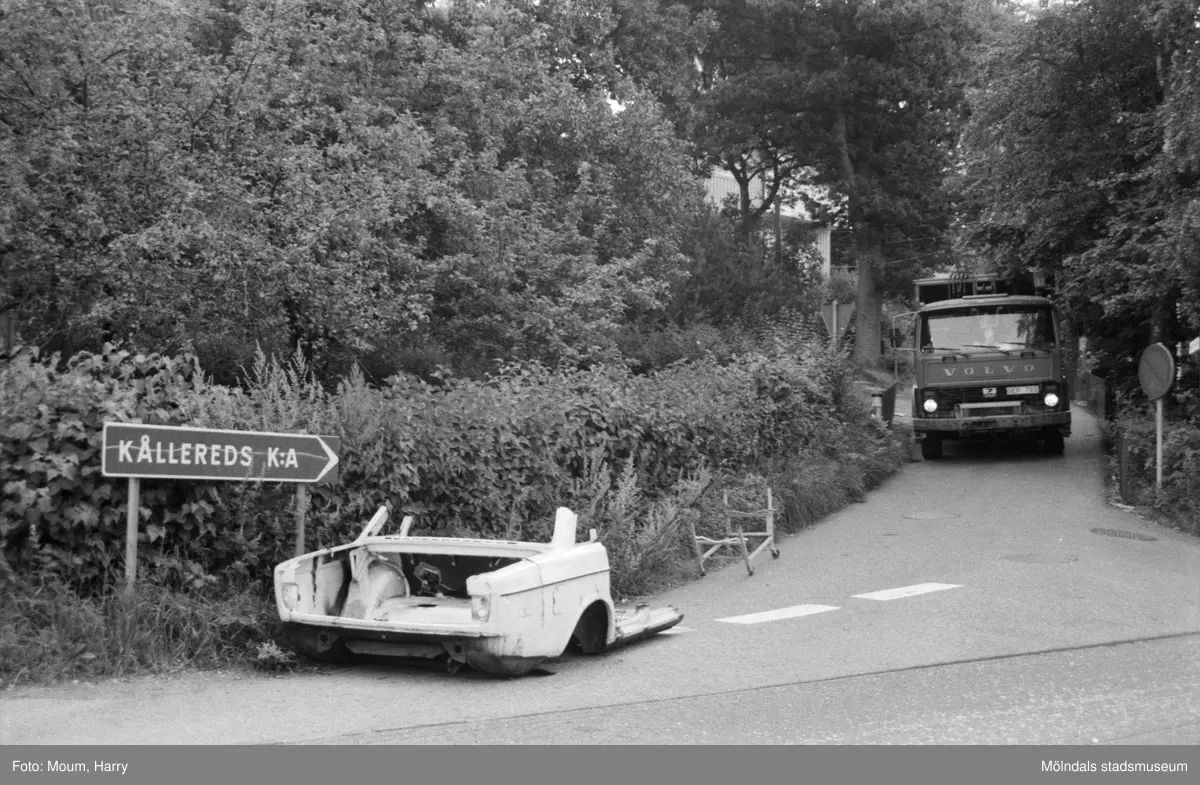 Bilvrak i korsningen Gamla Riksvägen-Kyrkbacken i Kållered, år 1984.