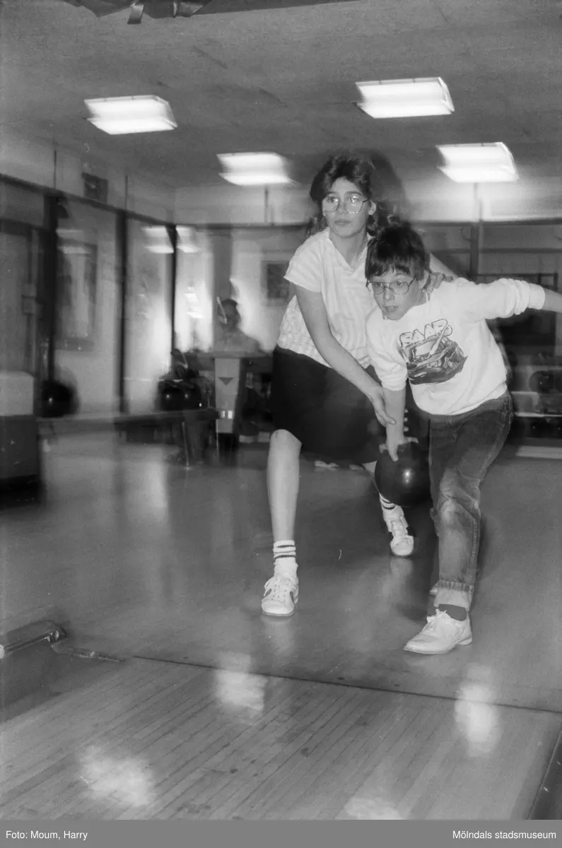 Bowling för barn under februarilovet i Mölndal, år 1985.
