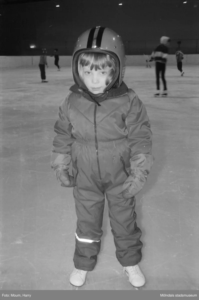 Skridskoåkning för barn under februarilovet i Mölndal, år 1985.