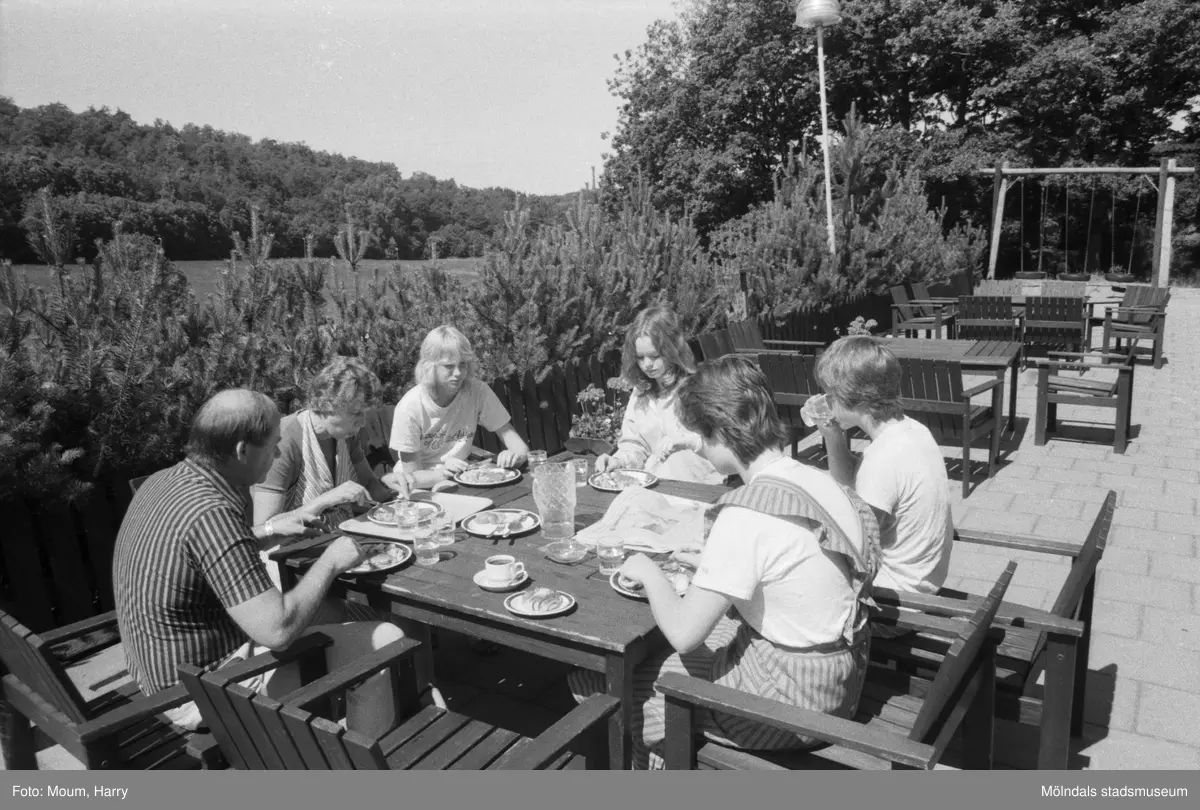 Personer som äter på Torrekulla turiststation i Kållered, år 1984.