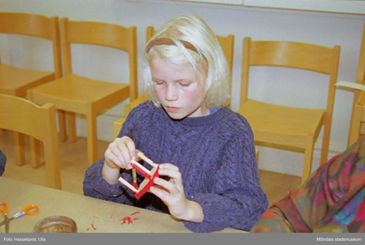 Titel: Familjesöndag med tillverkning av miniatyrstolar. Se även 1994_1035-1994_1045.