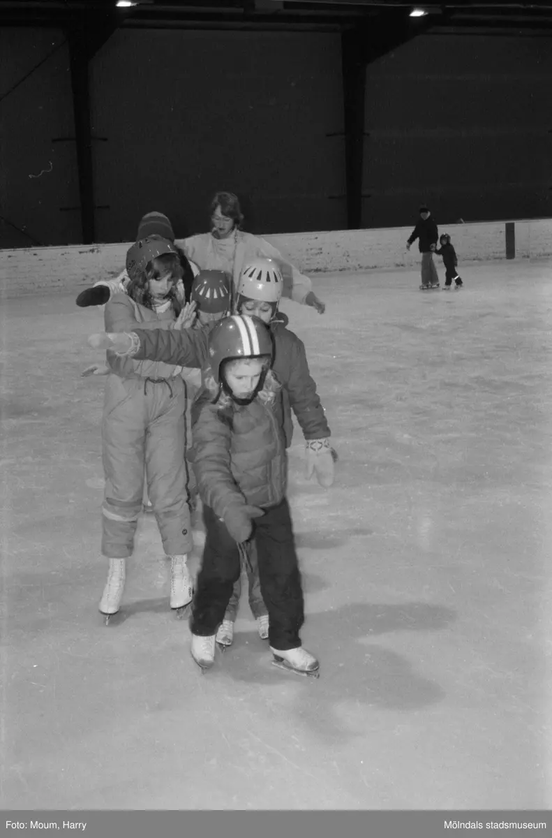 Skridskoåkning för barn under februarilovet i Mölndal, år 1985.