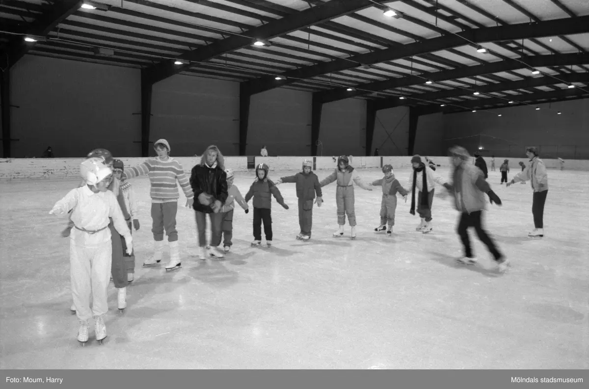 Skridskoåkning för barn under februarilovet i Mölndal, år 1985.