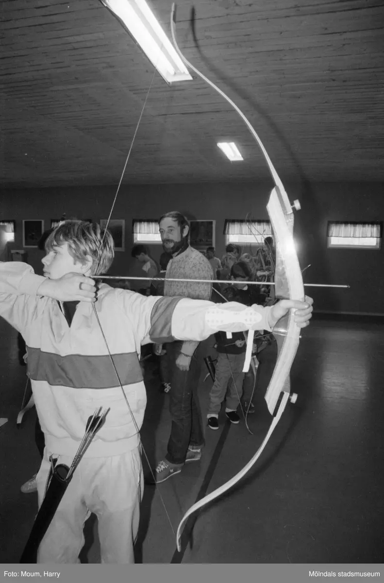 Bågskytte för barn under februarilovet i Mölndal, år 1985.