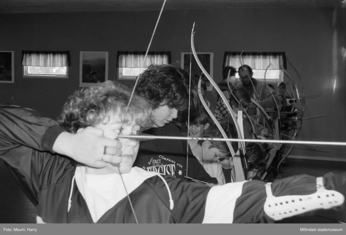 Bågskytte för barn under februarilovet i Mölndal, år 1985.
