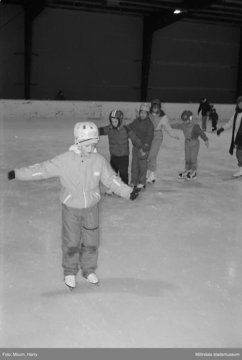 Skridskoåkning för barn under februarilovet i Mölndal, år 1985.