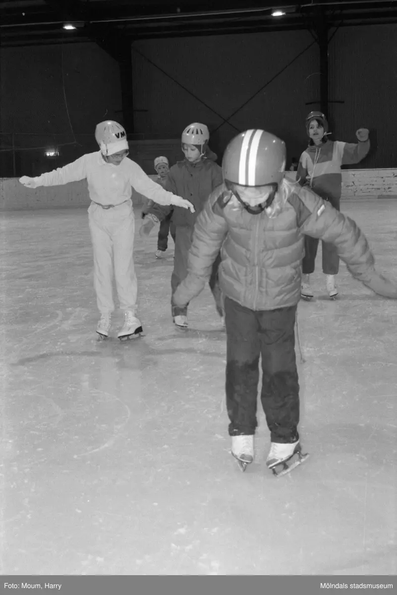 Skridskoåkning för barn under februarilovet i Mölndal, år 1985.