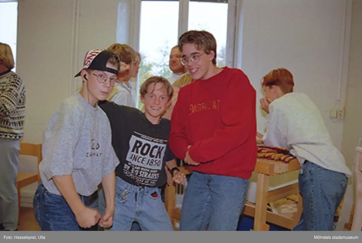 Pedagogisk verksamhet i samband med tillfällig utställning "Lindomemöbler". Bildhuggeri och ådermålning (Almåsskolan klass 8). Se även 1994_0998-1994_1034 samt 1994_1046-1994_1061.