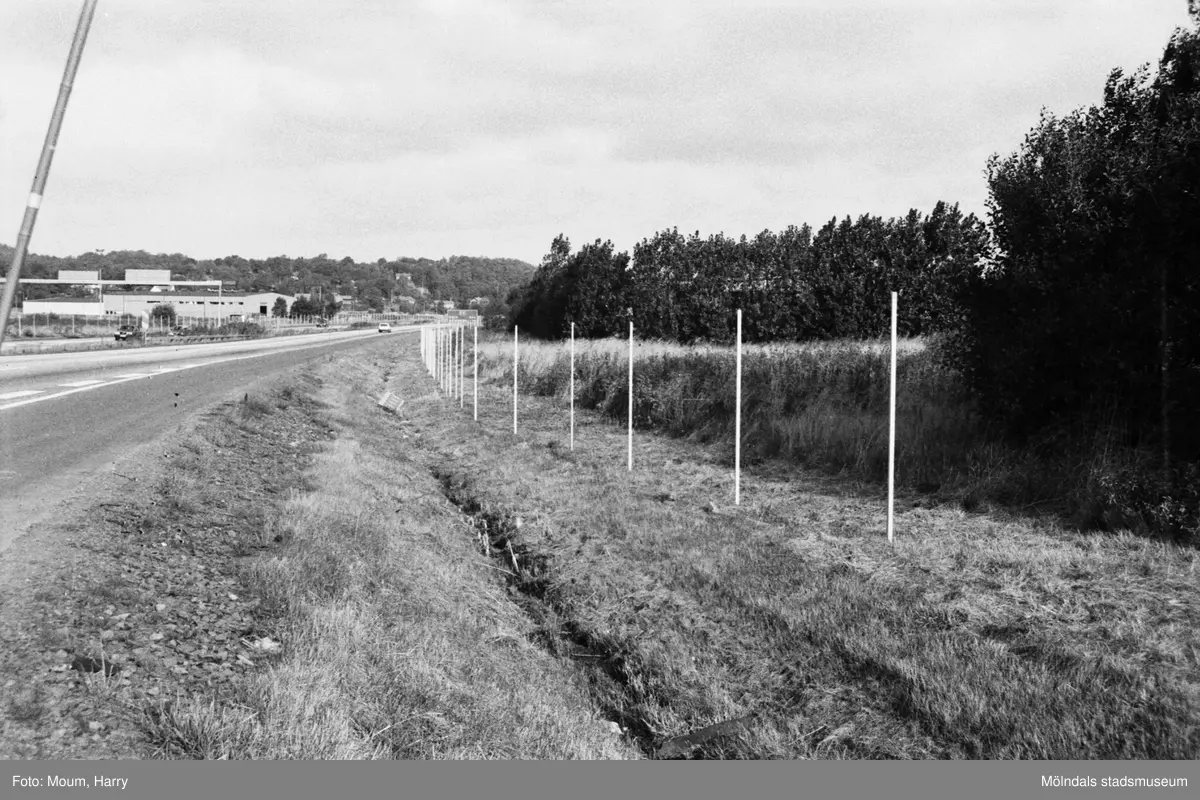 Uppsättning av viltstängsel vid Kungsbackaleden mellan Kållered och Åbro, år 1983. "Motorvägen genom Kållered blir snart förbjuden mark för storvilt."