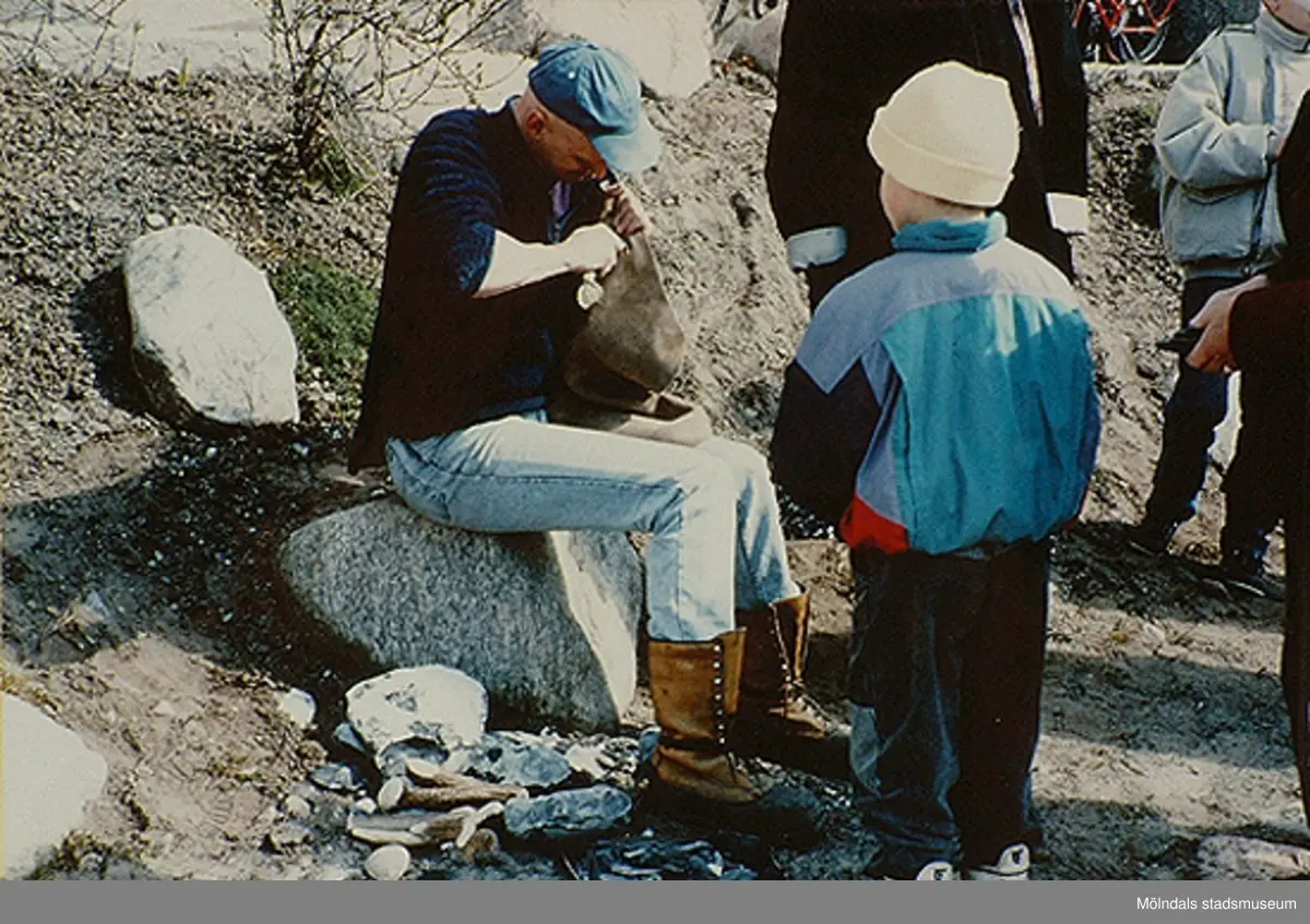 Stensmeden Dan Kärrfors bearbetar en sten