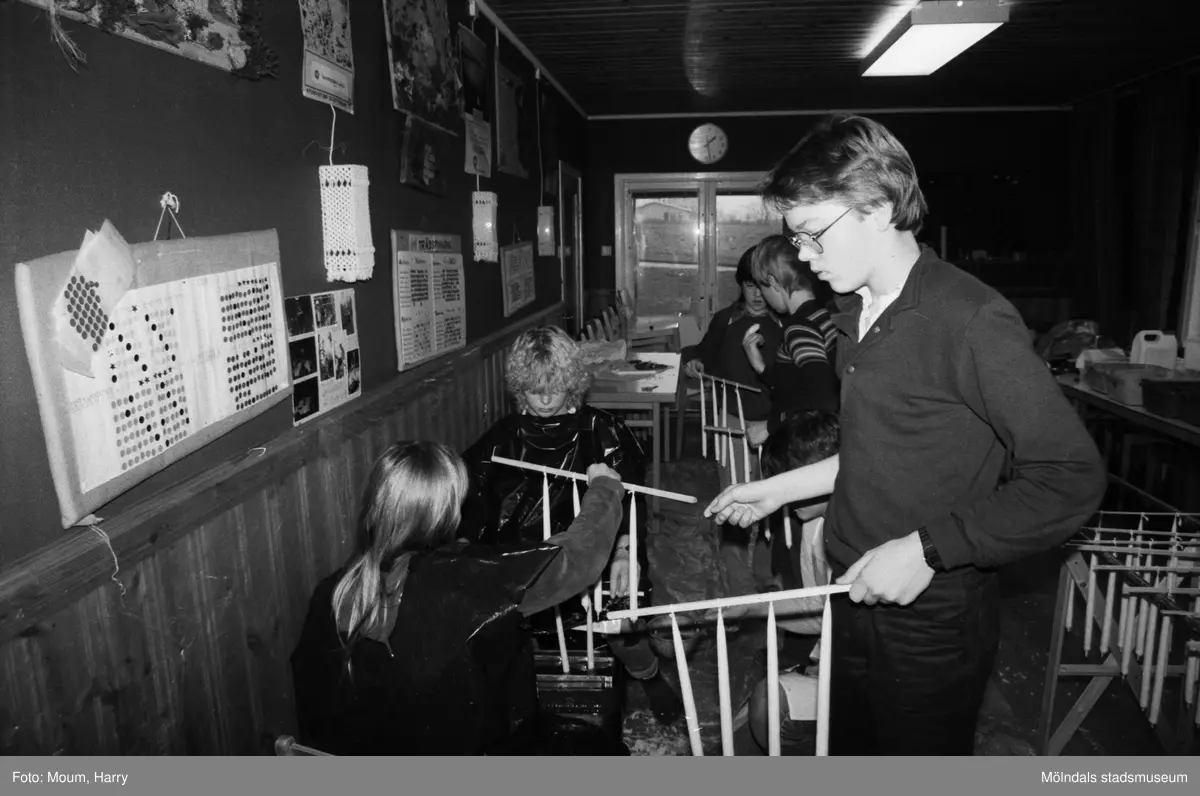 Ungdomar från Annestorpdalens scoutkår stöper ljus i scoutgården på Konditorivägen 3 i Lindome, år 1983.