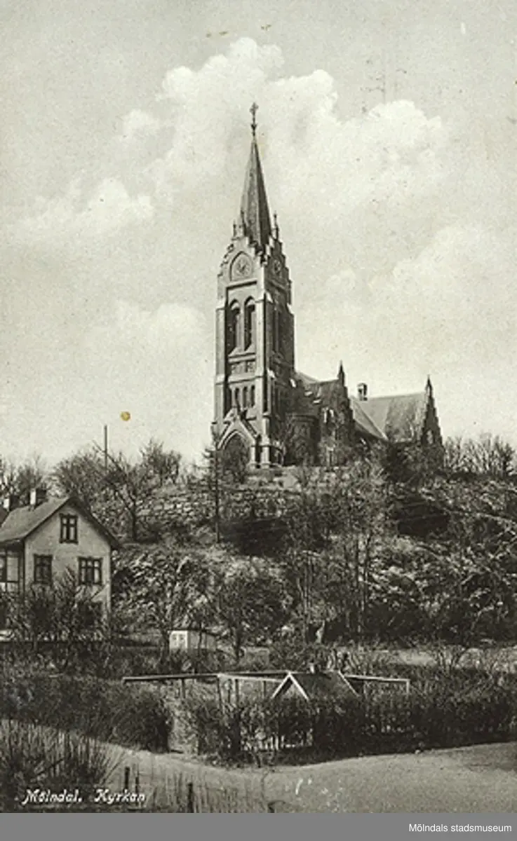 Ett vykort på Fässbergs kyrka i Mölndal, okänt årtal.