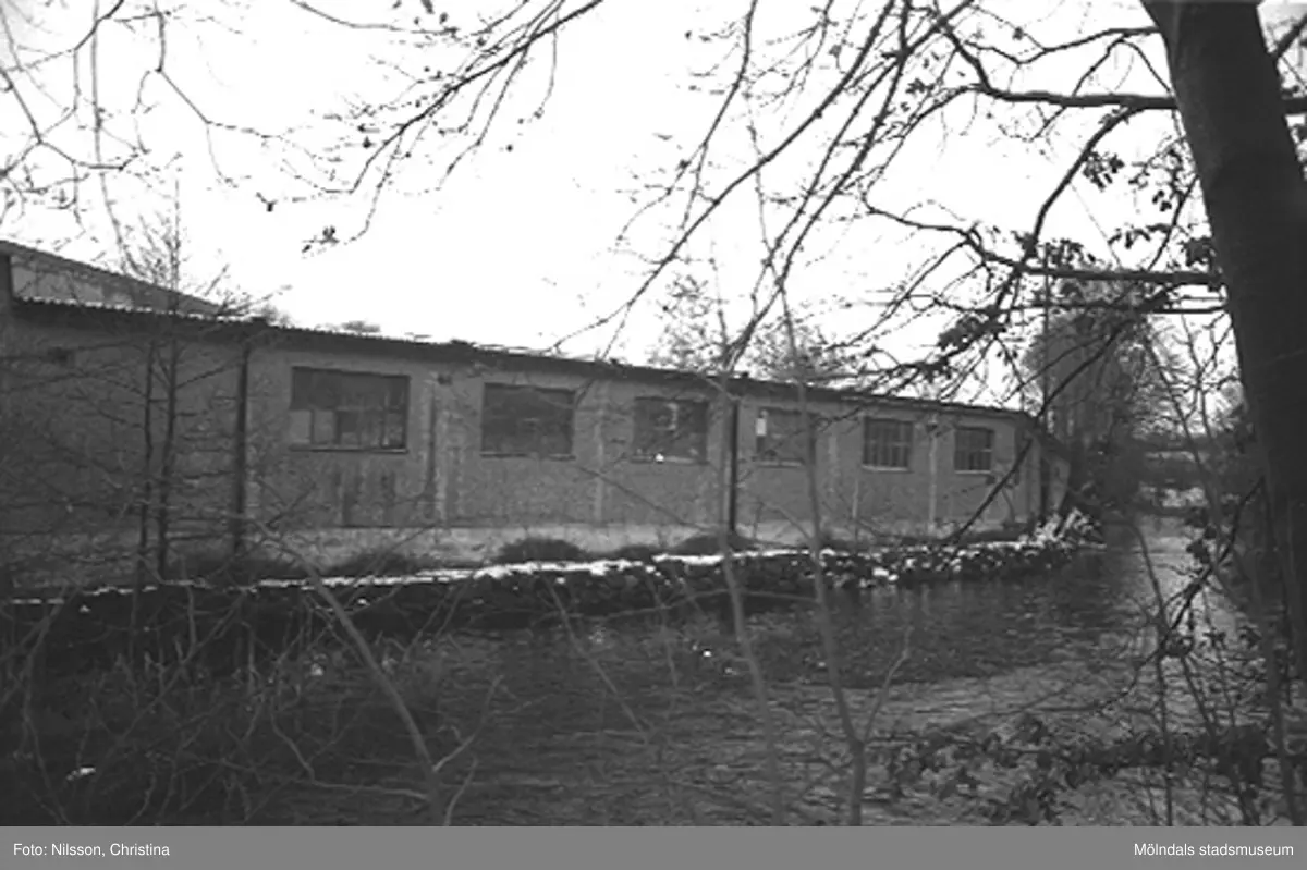 Kvarnfallet 31 i Grevedämmet, hösten 1994. Fabriksbyggnad vid vattendrag.