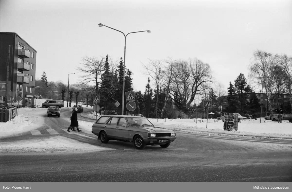 Trafik i korsningen Gamla Riksvägen-Streteredsvägen i Kållered, år 1984.