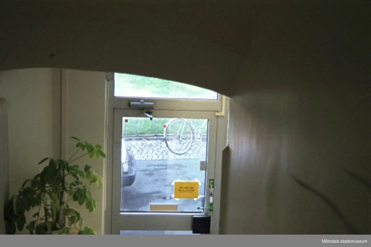 Norra ingången mot Rygatan, infrån Mölndals museum, september-oktober 1998. Relaterat motiv: 2004_0053.