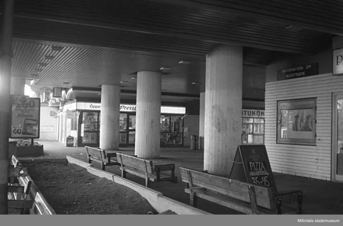 Pressbyrå och Gatukök under bron. Mölndalsbro i dag - ett skolpedagogiskt dokumentationsprojekt på Mölndals museum under oktober 1996. 1996_0950-0965 är gjorda av högstadieelever från Kvarnbyskolan 9A, grupp 3. Se även 1996_0913-0940, gruppbilder på klasserna 1996_1382-1405 samt bilder från den färdiga utställningen 1996_1358-1381.